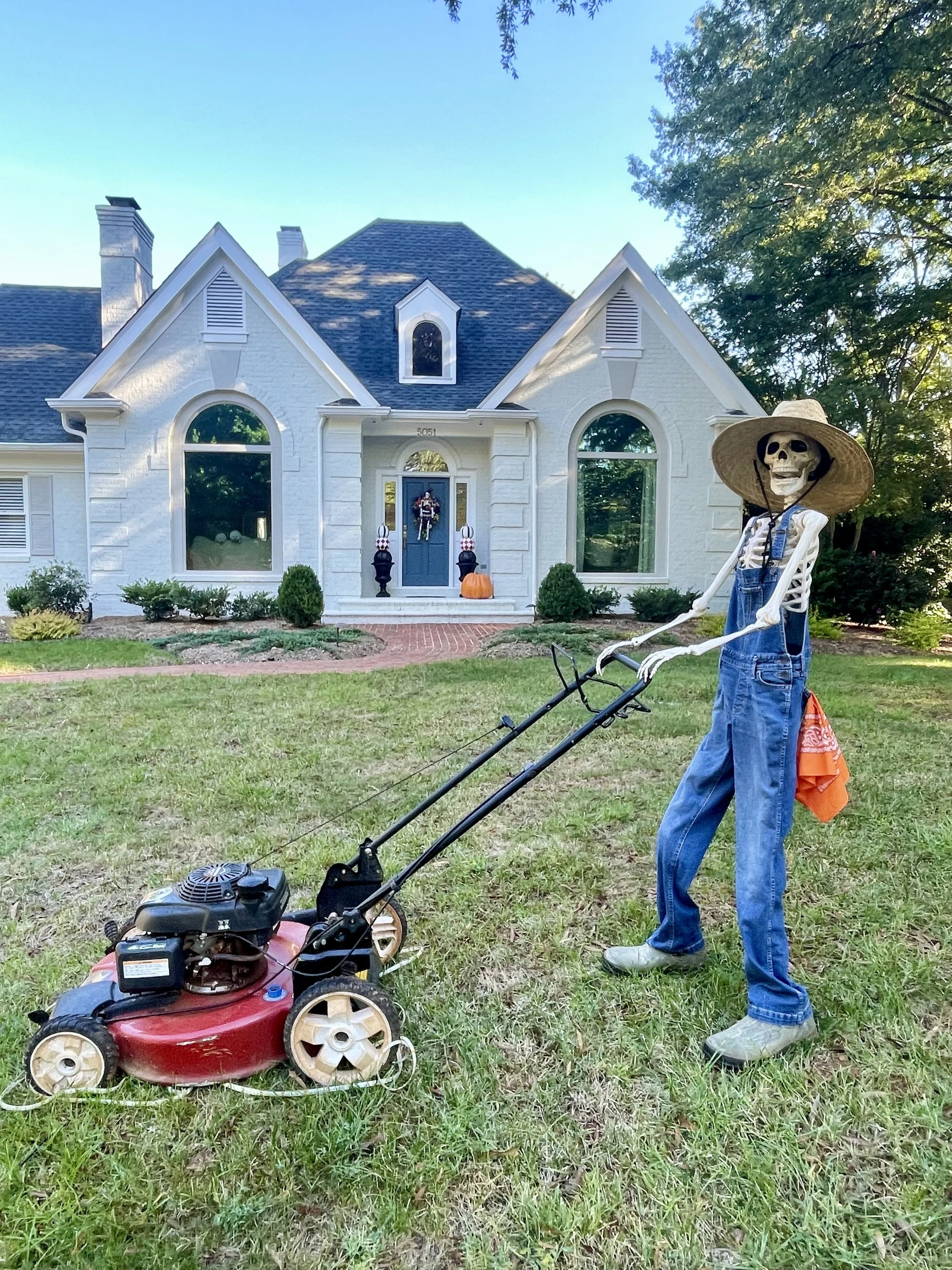 Spooky season is finally here, and it’s one of my most favorite times of the year—so we decided to get festive. We got out our skeleton crew and went a little creative this time, and I think the results were pretty fun. As I have stressed to our friends and neighbors, this little scene is NOT art imitating life; it is pure fiction. To kick off your Halloween revelry, let me show you the scene taking place at Chateau de Chaos this fall: