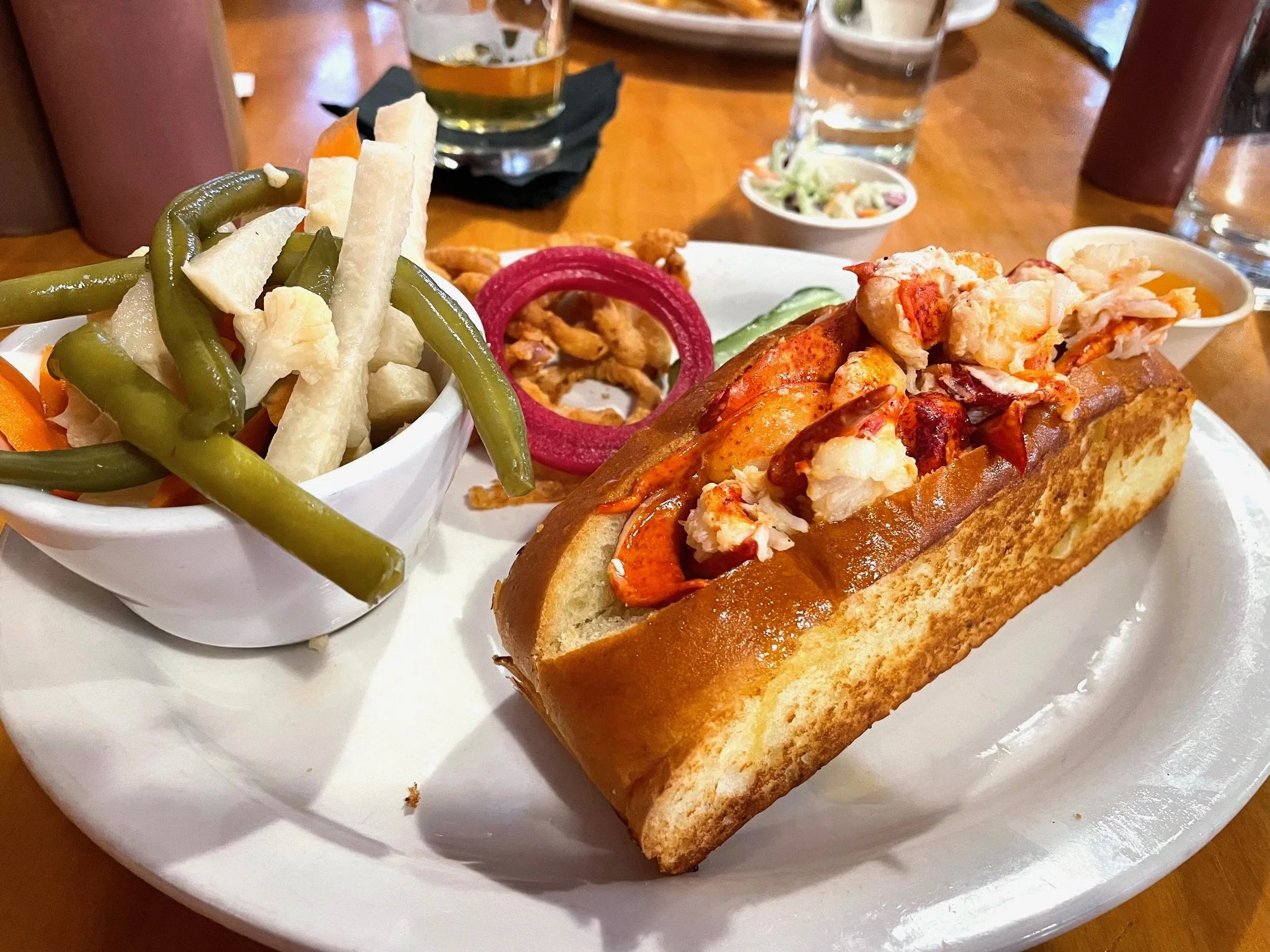 What to do after all that excitement? Lobster rolls, of course! Warm, with butter, cole slaw, and pickled vegetables.