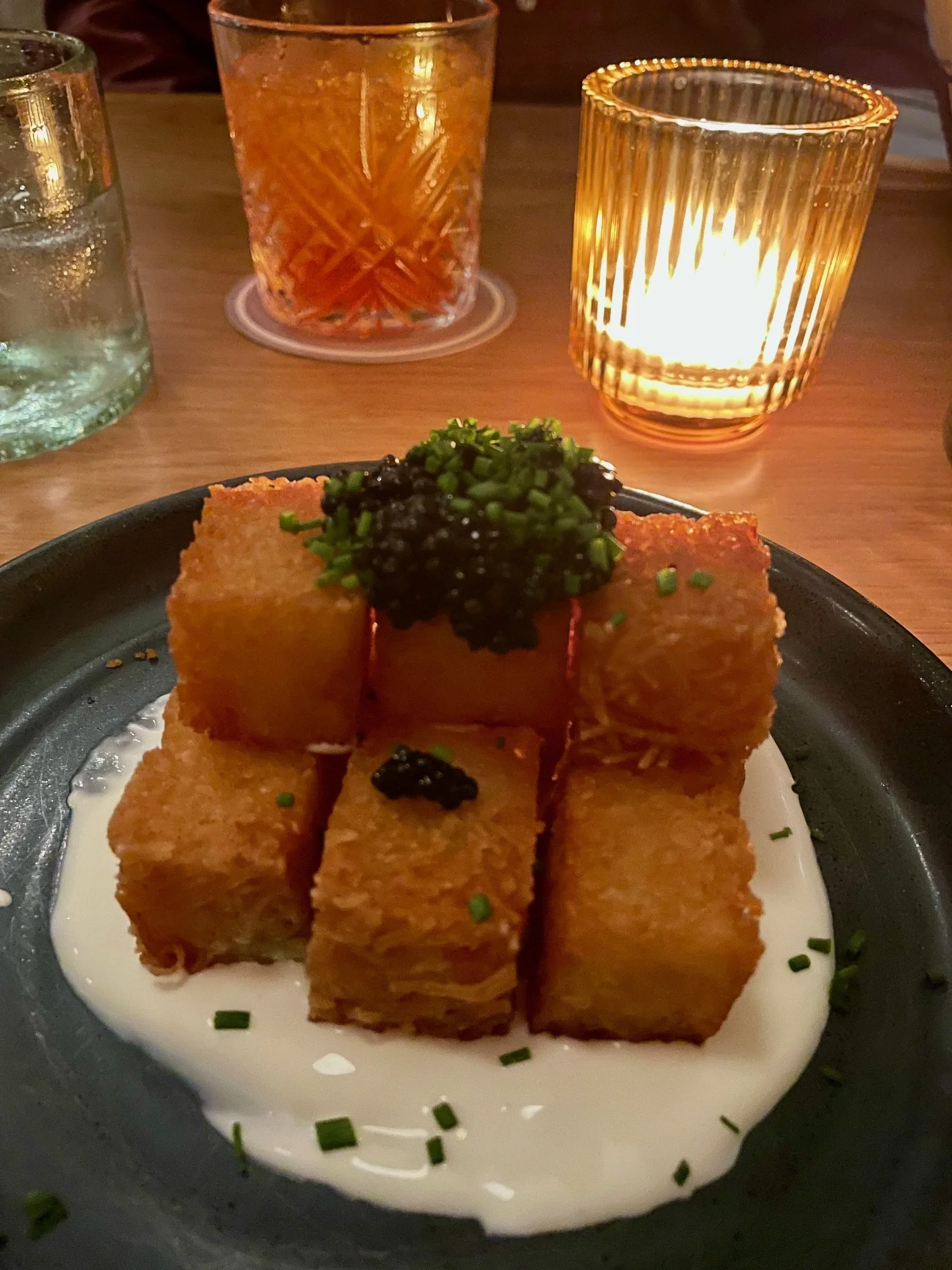Our dinner Friday was at The Seagrille and, among other things, we enjoyed these caviar tater tots. I do not exaggerate when I say they are a near-life-changing experience. If you hate New England, detest Christmas, and are afraid to travel…go there for these. It will be worth it.