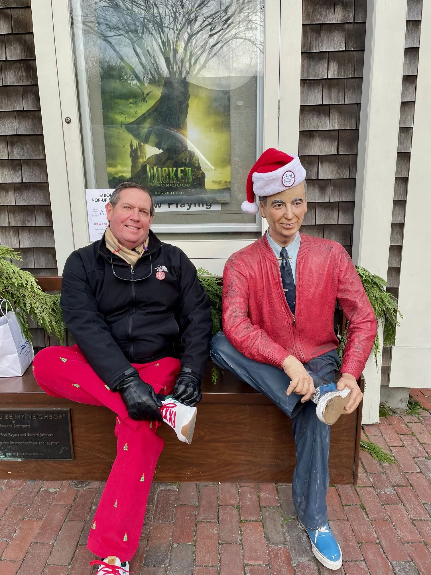 We were on our way to the Whaling Museum for their annual Festival of Trees (there were 88 decorated Christmas trees on display this year), and we had to stop to take a picture outside the Dreamland Theater with the statue of Mr. Rogers. Fred Rogers was a regular summer resident of Nantucket and has been named an honorary patron saint of the island. The theater presents an annual Fred Rogers Good Neighbor Award to a selfless community member.