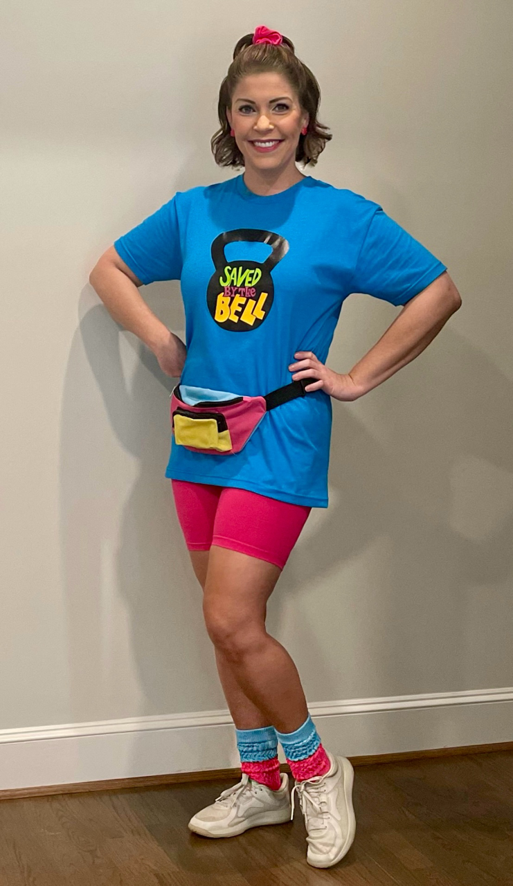 I have to say, the scrunchie and fanny pack on Decades Day, and then the short-shorts and fabulous wig on Halloween morning had me off to quite a start. And then it was time for the main event! Our neighborhood hosts a pizza party, costume contest, and then all the kids leave in a big group to trick-or-treat together, so it is the perfect way to enjoy Halloween and get into the spirit of the occasion. Naturally, we try to come up with a family costume each year, and this time, we got lots of laughs, even if the dogs were not exactly thrilled with their outfits.