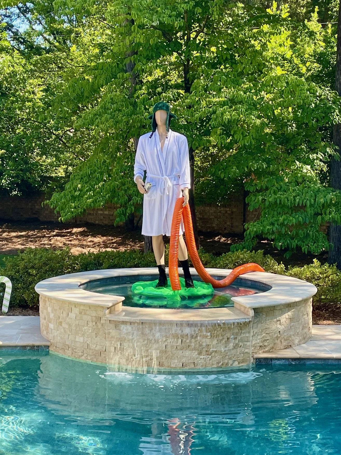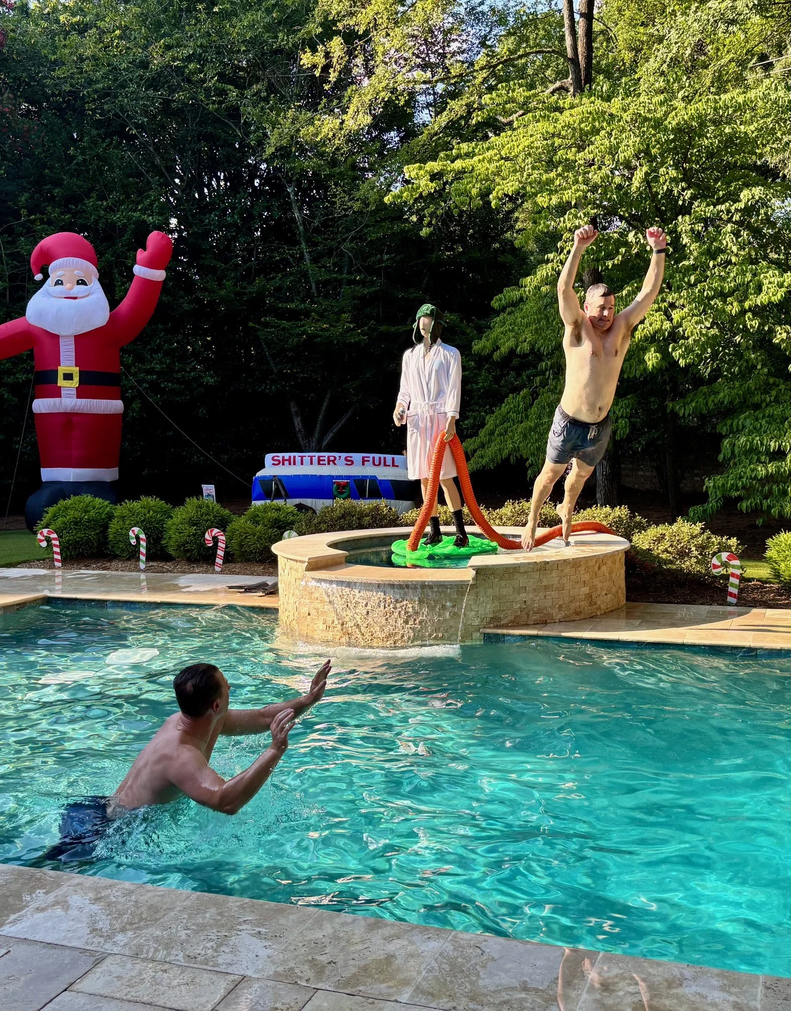 My biggest regret is that I was an epic FAIL with the group photo. After managing to wrangle 20+ people into poses around a Cousin Eddie mannequin in the hot tub, I forgot to sync my phone to the remote control I used with my camera, so the photo did not actually take. This puts my photography record at these events now at 2-2. I officially hand over the camera next year!