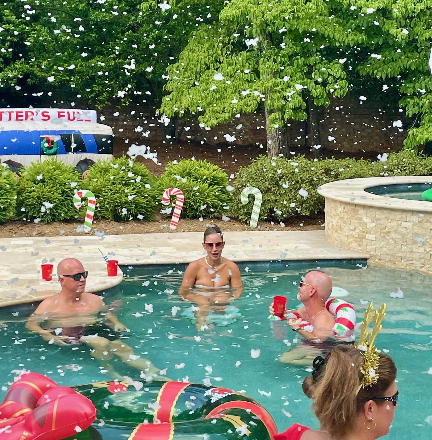 Meet Uncle Lewis and Aunt Bethany, pool party edition.