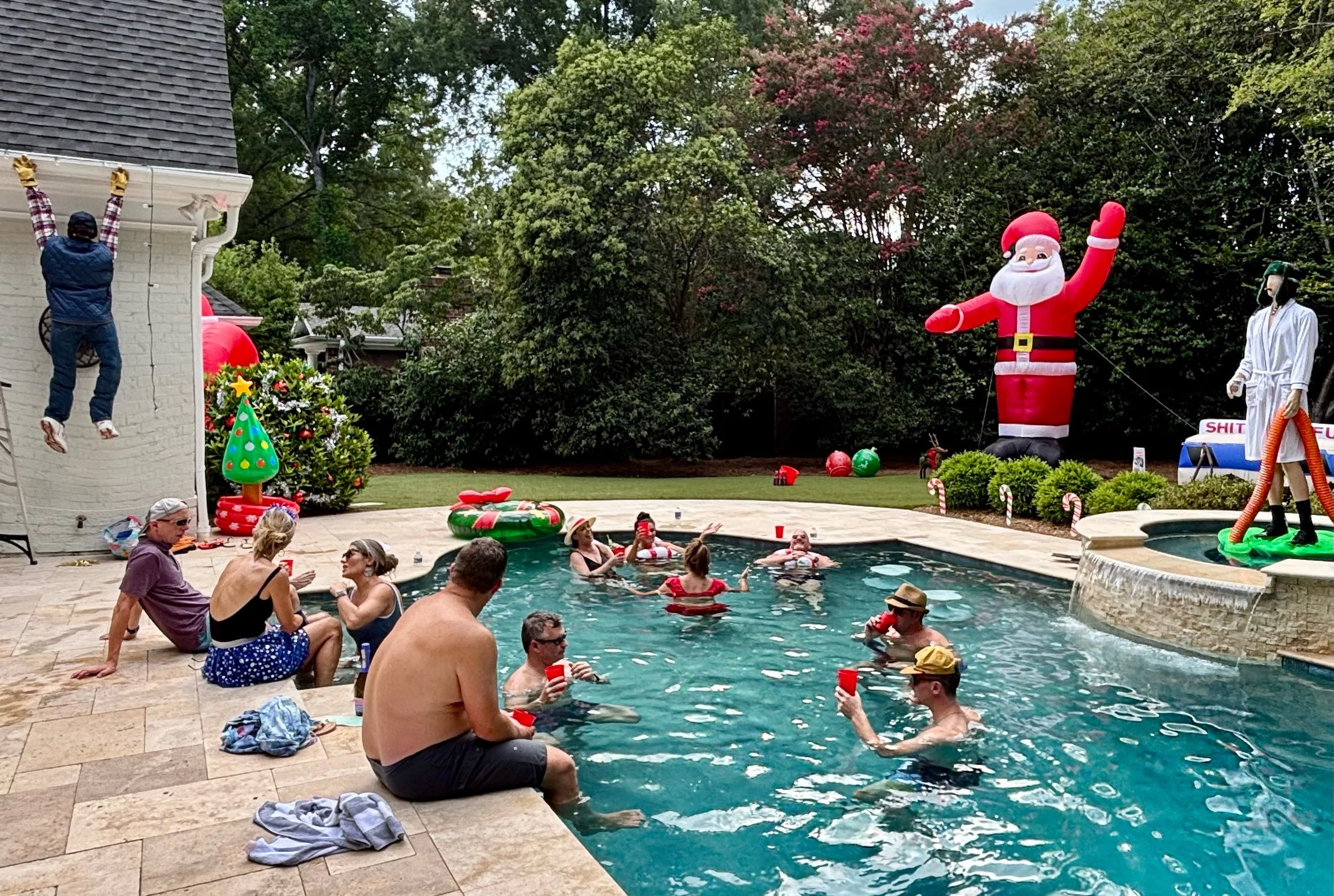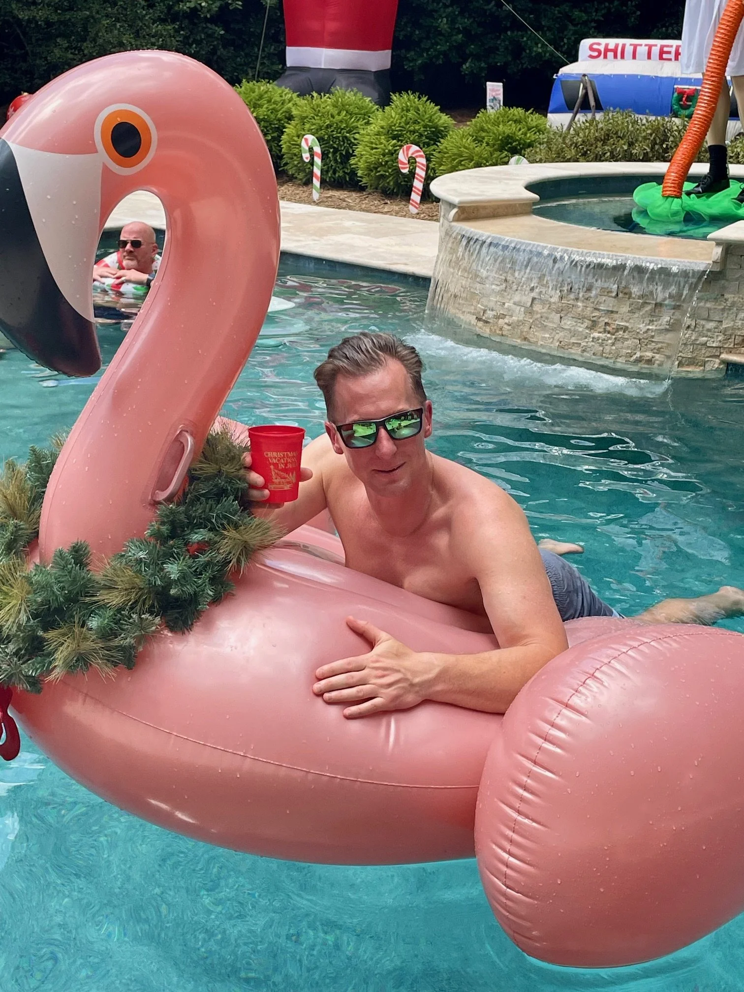 Meanwhile, I thought Chris perfectly captured the essence of Christmas in July chilling with a cocktail and a Santa hat.